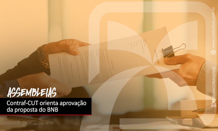 A Confederação Nacional dos Trabalhadores do Ramo Financeiro (Contraf-CUT) e a Comissão Nacional dos Funcionários do BNB orientam as assembleias das bases com unidades do Banco do Nordeste do Brasil a aprovarem a proposta de acordo de dois anos apresentada na tarde desta sexta-feira (28) pela direção do banco às entidades sindicais, que mantém os direitos e atendem as reivindicações dos funcionários.