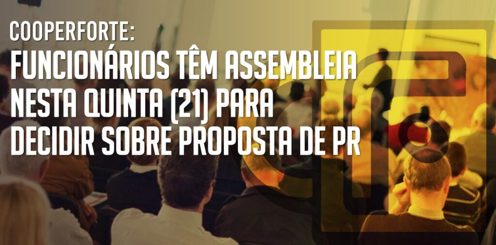 O Sindicato convoca os funcionários da Cooperforte para participarem de assembleia extraordinária nesta quinta-feira (21), para apreciação e deliberação da proposta de Acordo Coletivo de Participação nos Resultados, referente ao exercício de 2023.