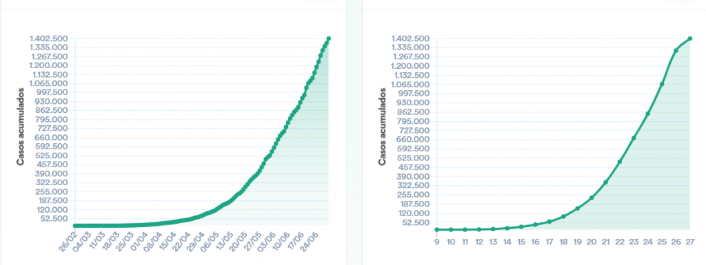 Em 24 horas, foram registradas 33.846 novas infecções de Covid-19, fazendo o número total saltar para 1.402.041.