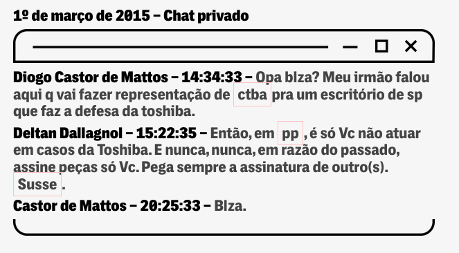 Minutos depois, Dallagnol avisou o próprio corregedor, em chat privado, que encaminhara o ofício. “Caro Oswaldo, obrigado por sua atenção, mais uma vez. Fiz o ofício, confidencial, cadastrando apenas nós dois”. Barbosa respondeu em seguida: “Grato. Despacharei na segunda, abraços”.