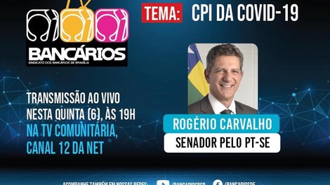 O programa TV Bancários desta quinta-feira (6) tem como tema a CPI da Covid-19, Comissão Parlamentar de Inquérito criada pelo Senado para apurar ações e omissões do governo federal no enfrentamento da pandemia no Brasil. O convidado para debater o assunto é senador Rogério Carvalho (PT-SE), membro suplente da CPI.