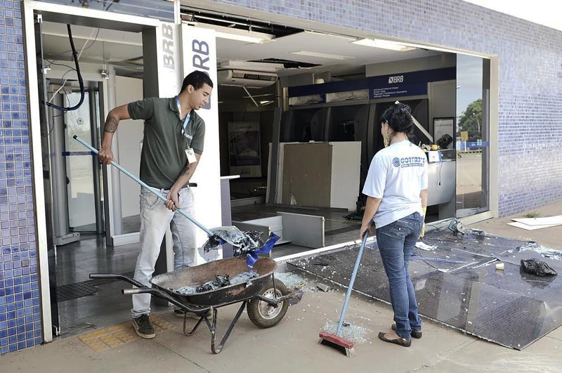 Na madrugada desta quarta-feira (11), criminosos explodiram dois caixas eletrônicos da agência do Banco de Brasília (BRB), localizada na sede da Companhia de Saneamento Ambiental do Distrito Federal (Caesb), no Setor de Indústrias e Abastecimento (SIA). Os suspeitos fugiram sem conseguir acessar os cofres dos equipamentos.