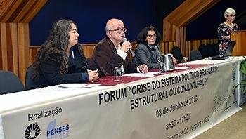 O Fórum Crise do Sistema Político Brasileiro: Estrutural ou Conjuntural? foi uma uma realização do Fórum Pensamento Estratégico (Penses), com o apoio do IFCH da Unicamp. O Penses é um espaço acadêmico vinculado ao Gabinete do Reitor, responsável por promover discussões que contribuam para a formulação de políticas públicas voltadas ao desenvolvimento da sociedade em todos seus aspectos.