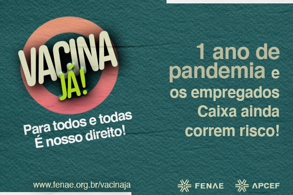 Em 7 de abril, a Fenae e as Apcefs lançaram Campanha Vacina Já, visando pressionar o governo pela vacinação para todos os brasileiros e a inclusão dos empegados da Caixa entre as prioridades do Plano Nacional de Imunização.