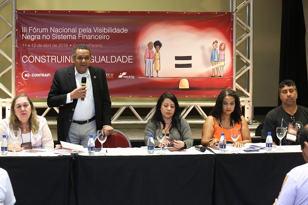 “É visível que as elites estão insatisfeitas com a ascensão social das populações pobres, predominantemente negras, nos últimos anos. Ver o negro ocupando espaços públicos e de poder tem causado um mal estar terrível para essas pessoas. É por isso que essa luta precisa ser feita por nós, bem como a luta em defesa do estado democrático de direito”, acrescentou Roberto von der Osten, presidente da Contraf-CUT, na abertura do evento.
