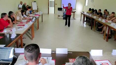 O curso, que veio até o Centro-Oeste, conta com o apoio do Sindicato e da Fetec-CUT/CN. Teve início em 2009 e já passou pelas regiões Nordeste, Sul e Sudeste.