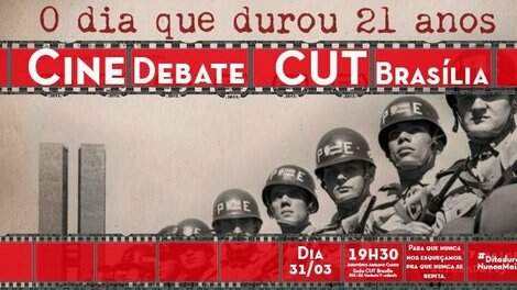 Em memória aos 51 anos da ditadura militar no Brasil, a CUT Brasília realizará um Cine Debate sobre “O dia que durou 21 anos”, um documentário de Camilo Tavares que aborda fatos que compuseram o cenário que antecedeu o Golpe Militar de 1964 no Brasil. O evento será realizado no dia 31 de março, às 19h30, tem novo local. Será no auditório Adelino Cassis, da CUT Brasília, localizado no Conic (SDS Edifício Venâncio V subsolo – loja 14).