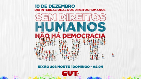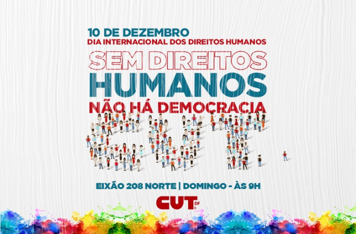 Não há democracia sem direitos humanos. A partir dessa premissa, a CUT-DF realiza, neste domingo (10), atividade no Eixão ─ altura da 208 norte ─, para debater a aplicação efetiva do conjunto de direitos a todas e a todos e os caminhos possíveis para que ninguém seja privado de seus direitos fundamentais.