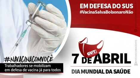 Por isso, no Dia Mundial da Saúde, a CUT, demais centrais sindicais e os movimentos sociais vão ter como foco central da luta será pelo #ForaBolsonaro. “A CUT definiu em suas resoluções elencar o #ForaBolsonaro como luta central. É imprescindível associar isso a todas as lutas, como as pela vacina e pelo emprego, porque com ele no governo não vamos conseguir reverter essa situação”, diz a secretária de Saúde do Trabalhador da CUT, Madalena Margarida Silva.