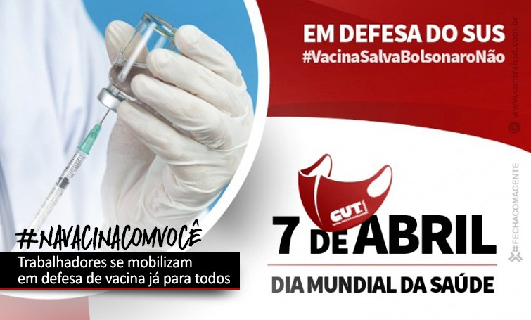 Os bancários de todo o Brasil vão participar das mobilizações convocadas pela Central Única dos Trabalhadores (CUT) e pela Frente Brasil Popular, nesta quarta-feira (7), Dia Mundial da Saúde, para reivindicar #VacinaJáParaTodos.