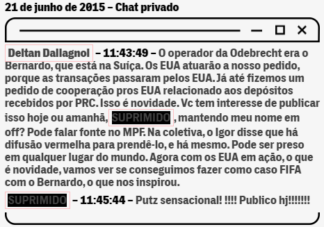 A conversa prossegue, e o repórter avisa que a matéria sobre a ajuda dos americanos no caso Odebrecht (que não estava formalizada à época) seria manchete do Estadão no dia seguinte.