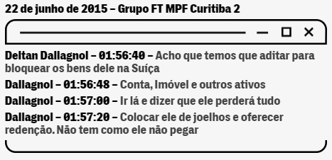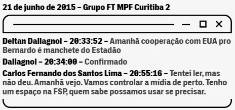 A informação vazada pela força-tarefa de fato virou manchete do jornal, e os métodos de pressão sobre o delator são retomados pouco depois, no mesmo chat: