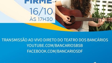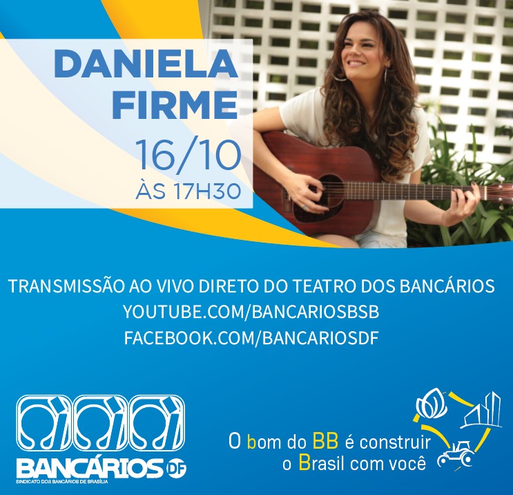 As celebrações dos 212 anos do Banco do Brasil não param. Nesta sexta-feira (16), além dos atos organizados pelo Sindicato na W3 Sul e Norte, haverá música e debate online. Às 17h30, é hora de ouvir Daniela Firme, diretamente do palco do Teatro dos Bancários, pelo youtube.com/bancariosbsb.