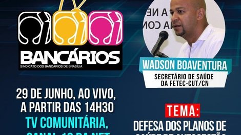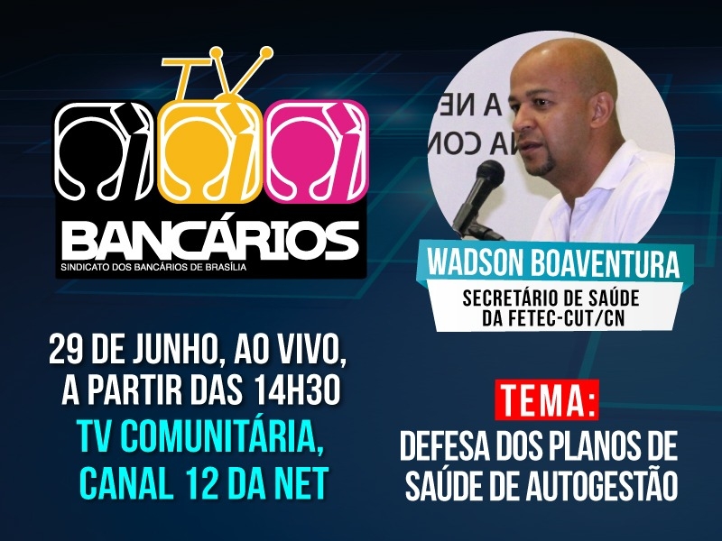 O TV Bancários na TV Comunitária (canal 12 da Net) volta a falar sobre os planos de saúde de autogestão dos funcionários de estatais nesta sexta-feira (29). Como convidado, o programa recebe o secretário de Saúde da Federação dos Bancários do Centro Norte (Fetec-CUT/CN), Wadson Boaventura.
