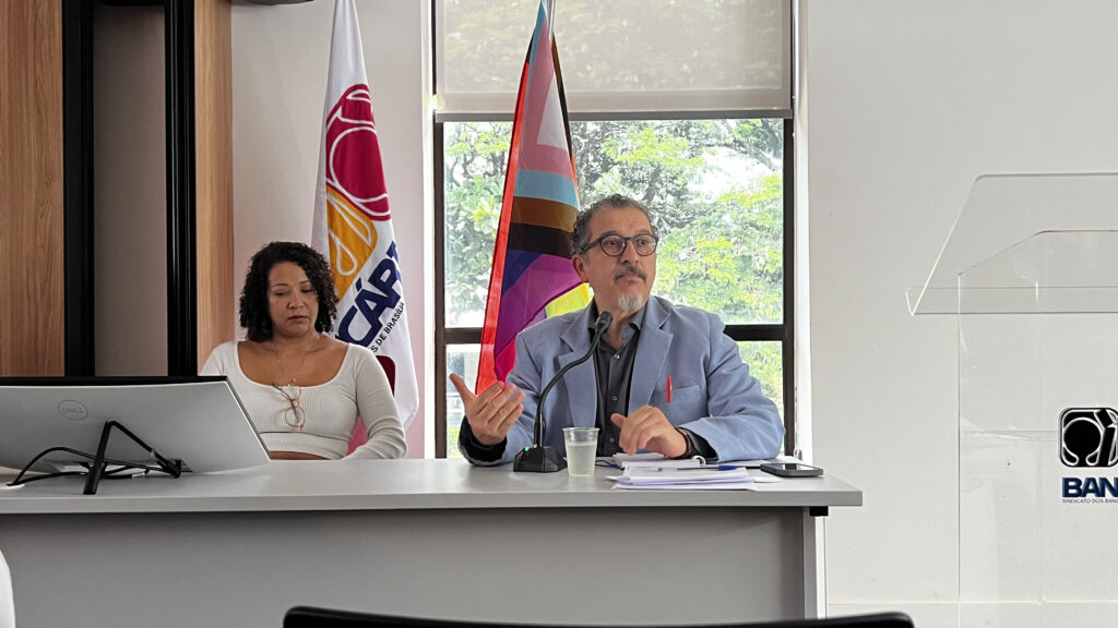 O presidente da Fetec-CUT/CN, Cleiton dos Santos, salientou os desafios que os bancários terão que enfrentar neste ano e citou a questão da saúde mental dos trabalhadores como uma das preocupações da categoria.