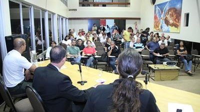 Os delegados sindicais do Banco do Brasil e os diretores do Sindicato estiveram reunidos durante esta terça-feira (27) no auditório Tom Jobim do Parlamundi da LBV para trocar informações, definir estratégias de luta e elaborar sugestões de reivindicações a serem levadas para o Congresso Distrital dos Bancários do BB, que acontecerá no dia 15 de maio.