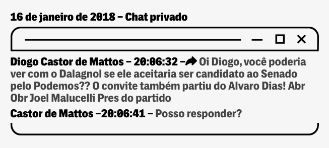 Meses antes, porém, em janeiro, Malucelli — também presidente do Podemos no Paraná e suplente do senador Alvaro Dias — abordou o procurador Diogo Castor de Mattos num clube de elite de Curitiba e lhe pediu seu número de celular. Sem conhecer os dilemas íntimos de Deltan Dallagnol ou as decisões que ele já comunicara aos amigos próximos, desejava lhe fazer uma proposta.