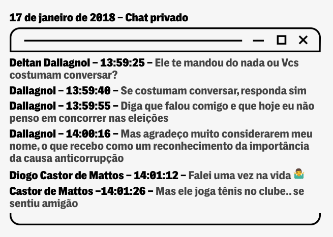 Não há, nas conversas do Telegram, indícios de que a medida da ANPR tenha sido tomada para favorecer uma hipotética candidatura de Deltan Dallagnol — para que pudesse disputar as eleições de 2018, ele teria de deixar o MPF até abril daquele ano.