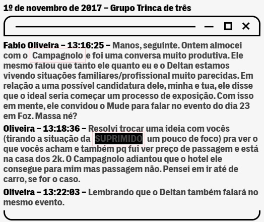 Num grupo chamado Trinca de três, que reunia o executivo de planos de saúde Fabio Oliveira e o advogado Hadler Favarin Martines, fundadores do Instituto Mude e frequentadores da mesma igreja batista de Dallagnol em Curitiba, a candidatura também foi discutida.