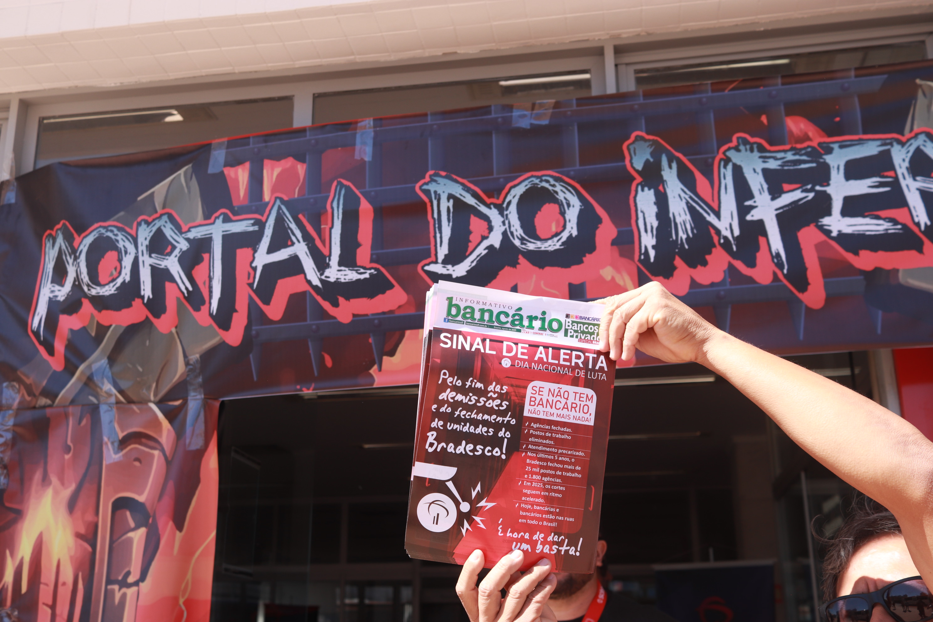 No Distrito Federal, o Sindicato já realizou ações simbólicas e de forte impacto em agências do Bradesco em regiões como Ceilândia Centro e Taguatinga Centro, com a instalação do chamado “Portal do Inferno”. A intervenção denunciou o cenário enfrentado por trabalhadores e clientes: sobrecarga de funções, filas intermináveis, metas abusivas e condições de trabalho cada vez mais precárias. As ações integraram mobilizações da categoria em defesa do emprego e do atendimento bancário digno.