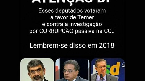 Laerte Bessa (PS), Ronaldo Fonseca (PROS) e Rogério Rosso (PSD). Guardem bem os nomes desses deputados federais de Brasília que votaram a favor de Temer e contra a investigação por corrupção passiva do presidente ilegítimo na Comissão de Constituição e Justiça (CCJ) da Câmara, nesta quinta-feira (13).