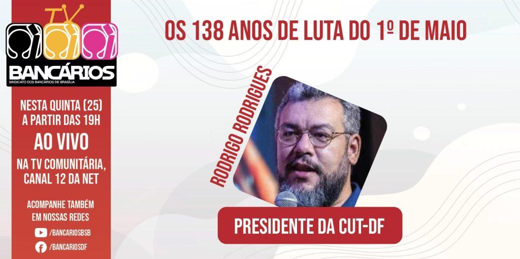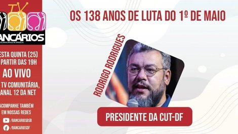 Com a proximidade das celebrações do 1º de Maio, marco da luta dos trabalhadores mundo afora, o programa TV Bancários recebe Rodrigo Rodrigues, o presidente da CUT-DF. A edição desta semana será transmitida na quinta-feira (25), ao vivo, às 19h, pela TV Comunitária de Brasília.