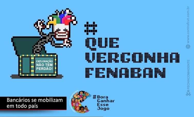 "Diante da postura de descaso da Fenaban, ao tentar rebaixar propostas e congelar salários, impondo perdas aos trabalhadores, a categoria tem que responder com intensificação da luta, o que passa pela adesão às atividades que o Sindicato tem realizado, de mobilização, tanto nas ruas quanto nas redes sociais", critica o presidente do Sindicato, Kleytton Morais, que integra o Comando Nacional. "Por isso, o Sindicato convoca a todos para, das 11h ao meio-dia desta terça-feira (23), deixar programados os tuítes e mensagens no Instagram ou mobilizarem-se com a utilização da tag #QueVergonhaFenaban, da mesma forma que os bancários e as bancárias da região de Taguatinga e Ceilândia, de grande concentração de trabalhadores nas agências, estejam atento à mobilização que o Sindicato fará ali, buscando informá-los das negociações em curso, alertando também para o calendário que se avizinha, bem como dialogando com a população em relação à intransigência da Fenaban e a uma possível decretação de greve como forma de pressionar os bancos a apresentarem uma proposta decente", complementa o presidente do Sindicato.