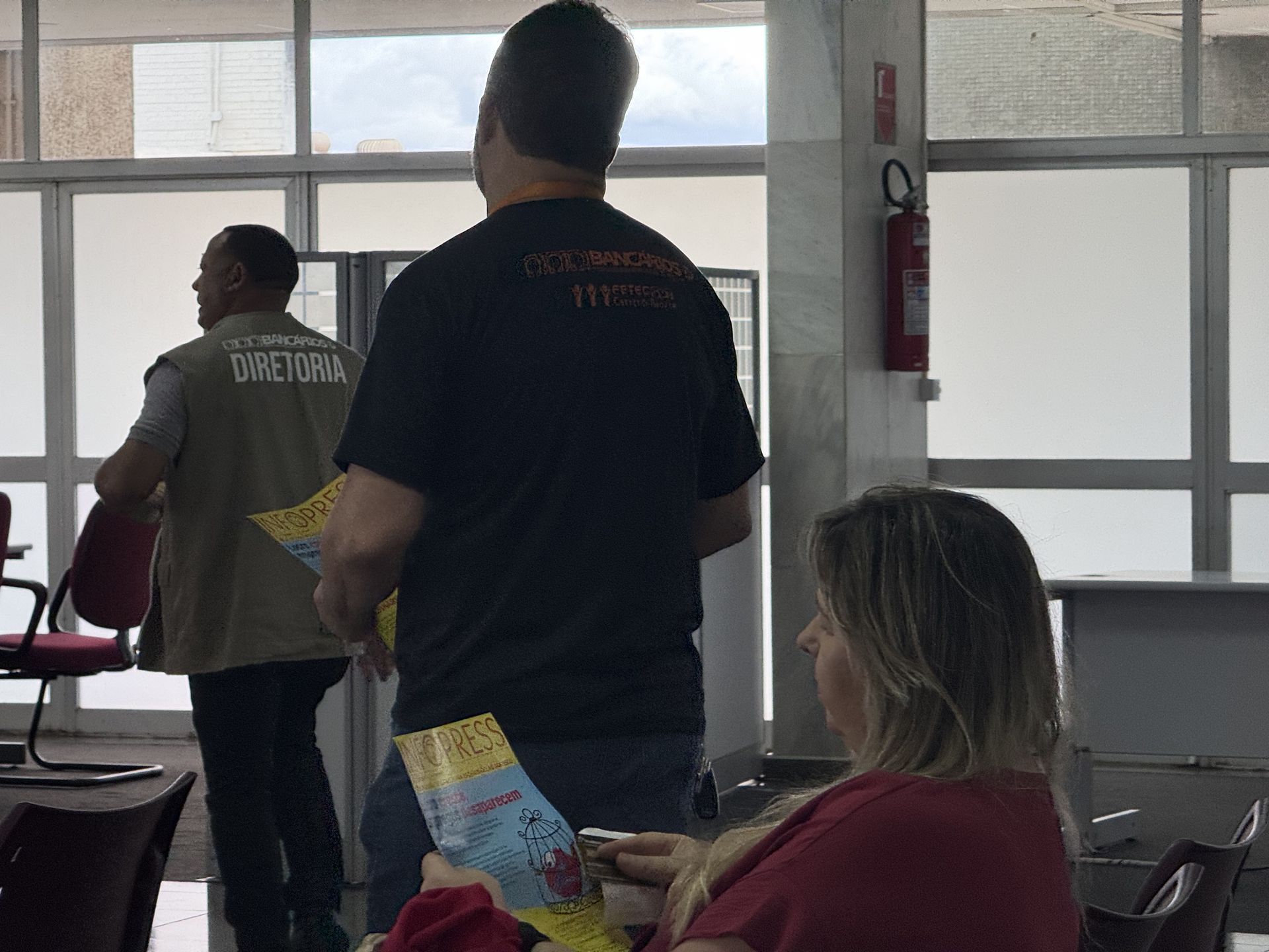 Diretores do Sindicato e da Fetec-CUT/CN estiveram em diversas agências, dialogando com a categoria e a população e denunciando os efeitos da política adotada pelo banco.
