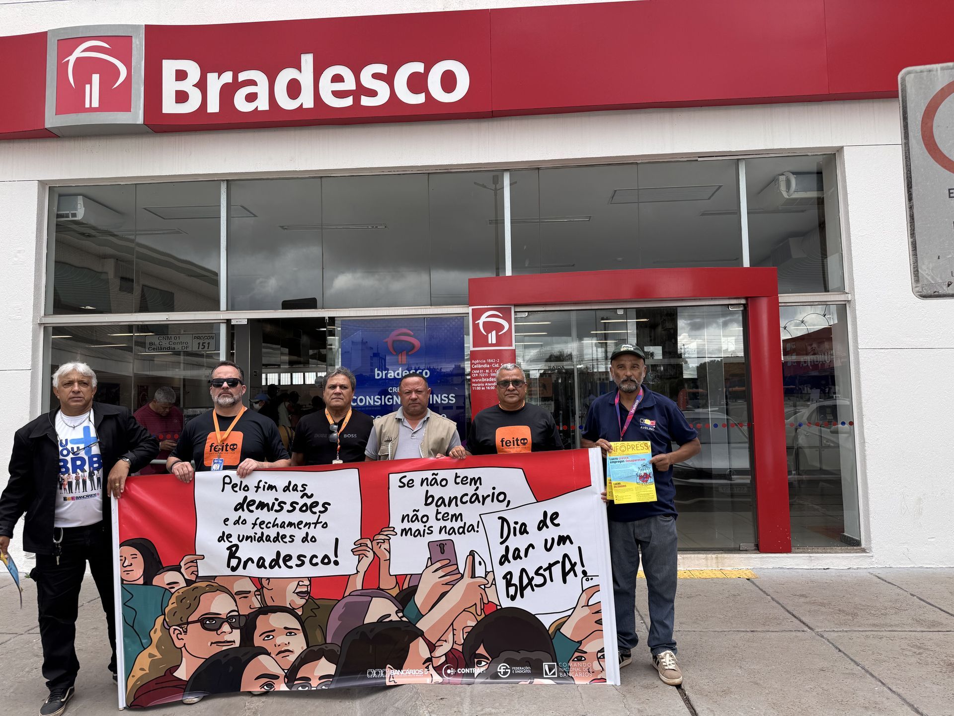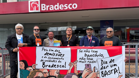 Bancárias e bancários de todo o país realizaram nesta terça-feira (17) o Dia Nacional de Luta contra as Demissões no Bradesco, denunciando a política do banco de redução de empregos e fechamento de unidades, mesmo diante de resultados financeiros expressivos.