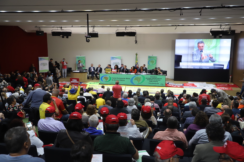 Foi durante o lançamento da frente parlamentar mista em defesa do serviço público, que reuniu mais de 600 trabalhadores de diversos setores no auditório Nereu Ramos, da Câmara dos Deputados.