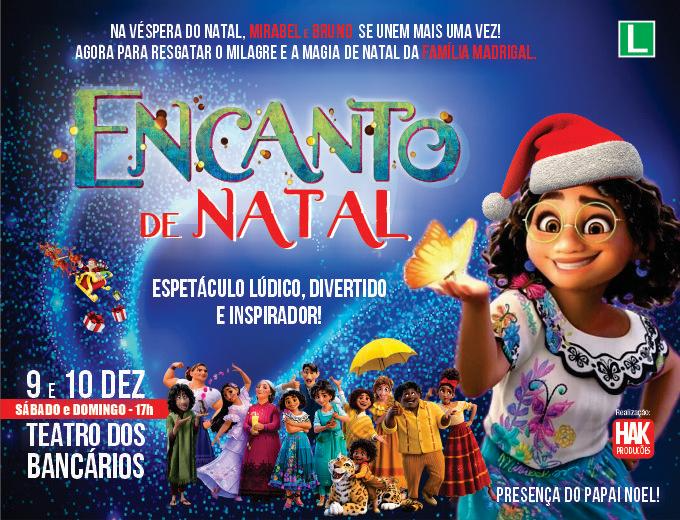 O palco do Teatro dos Bancários vai receber o espetáculo musical lúdico Encanto de Natal – Família Madrigal, nos dias 09 e 10 de dezembro, às 17h. Para aumentar ainda mais a alegria da garotada, também vai ter a presença especial do Papai Noel.
