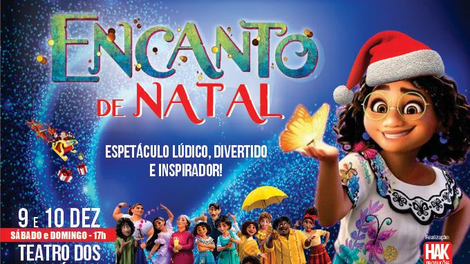 O palco do Teatro dos Bancários vai receber o espetáculo musical lúdico Encanto de Natal – Família Madrigal, nos dias 09 e 10 de dezembro, às 17h. Para aumentar ainda mais a alegria da garotada, também vai ter a presença especial do Papai Noel.