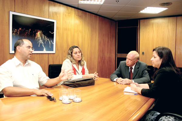 O diretor Enilson e a deputada Erika Kokay na reunião com o vice-presidente de Gestão de Pessoas da Caixa, Carlos Alberto Cotta (centro)