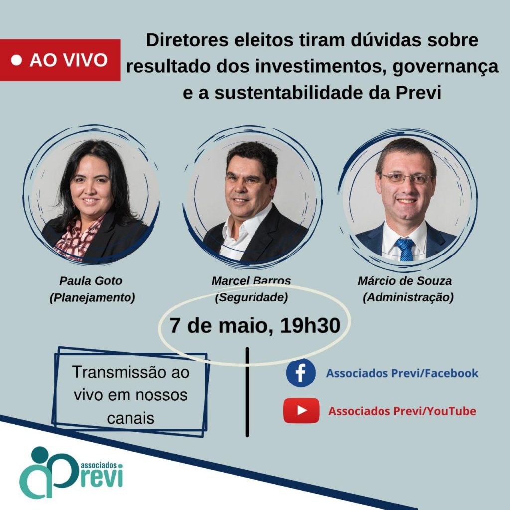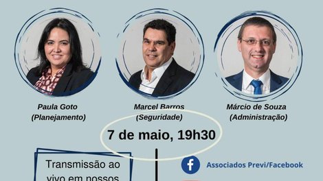 Como a Previ está enfrentando a crise será um dos temas da live com os diretores eleitos Marcel Barros (Seguridade), Paula Goto (Planejamento) e Márcio de Souza (Administração), que será realizada nesta quinta-feira (7), às 19h30.