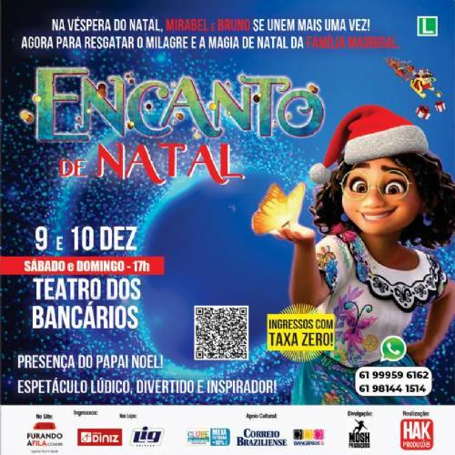 O Sindicato divulga os nomes dos bancários sindicalizados sorteados para curtir o espetáculo musical lúdico 'Encanto de Natal – Família Madrigal', neste sábado e domingo, às 17h, no Teatro dos Bancários (EQS 314/315 - Asa Sul).