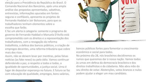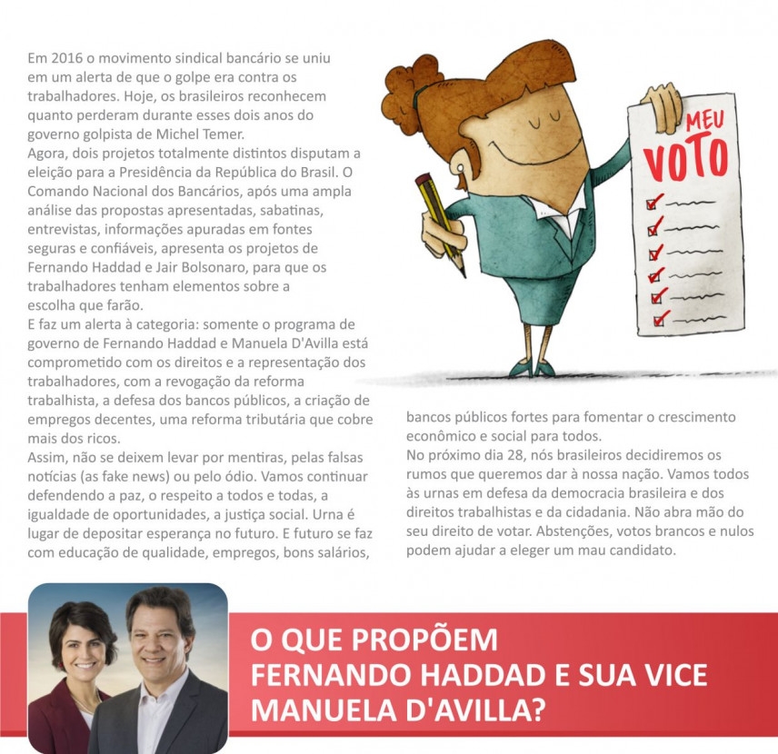 Comando Nacional dos Bancários alerta sobre diferença entre candidaturas: só uma se compromete com respeito aos direitos e defesa dos bancos públicos