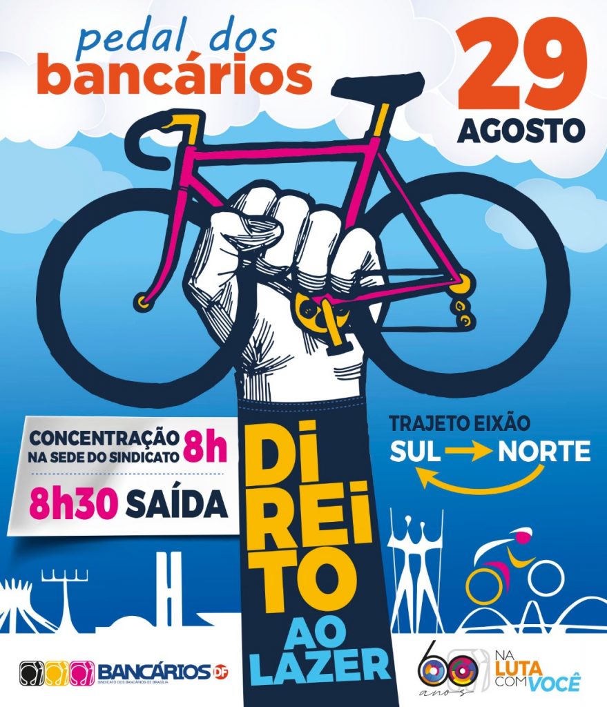 Todo 28 de agosto é dia de comemorar o trabalho da categoria bancária. Este ano, parte da celebração vai ser sobre duas rodas, percorrendo os 30 km do Eixão Sul e Norte. Para participar desta edição, marcada para o domingo (29), a partir das 8h, basta juntar-se ao pelotão dos bancários e curtir o Dia do Bancário.