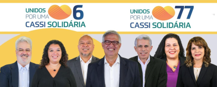 Para a Diretoria de Risco Populacional e o Conselho Deliberativo, o Sindicato manifesta o seu apoio à Chapa 6 - Unidos por uma Cassi Solidária, e para o Conselho Fiscal orienta o voto na Chapa 77 - Unidos por uma Cassi Solidária.