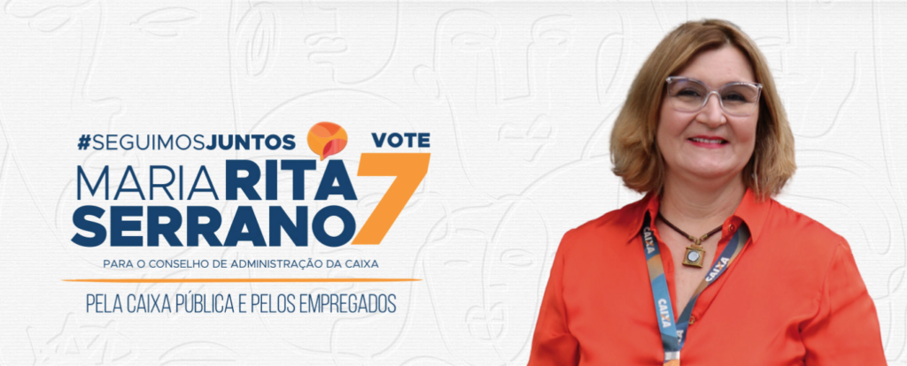 A Confederação Nacional dos Trabalhadores do Ramo Financeiro (Contraf-CUT) apoia a reeleição da atual conselheira, Rita Serrano. Para votar em Rita, digite 0007.