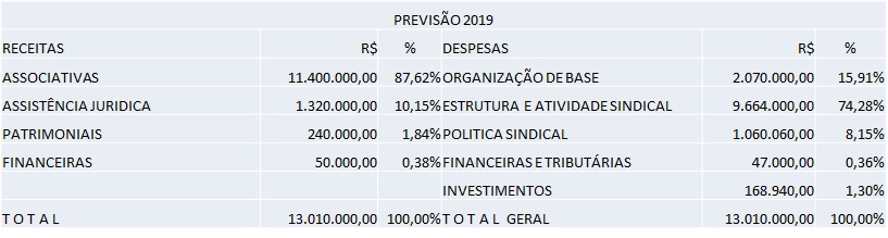 Secretário de Finanças do Sindicato, Wandeir Severo foi quem apresentou os números do orçamento previsto para 2019. Ele frisou a importância de se manter a estrutura do Sindicato de modo sempre agregado ao financiamento da luta por direitos e mais conquistas.