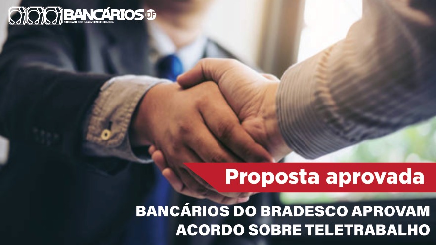 A assembleia virtual específica dos bancários do Bradesco de Brasília aprovou com mais de 80% dos votos válidos a proposta de acordo que visa regulamentar o teletrabalho no banco. A votação teve início na manhã do domingo (13) e foi finalizada às 12h desta segunda-feira (14), contando com a participação de 147 trabalhadores.