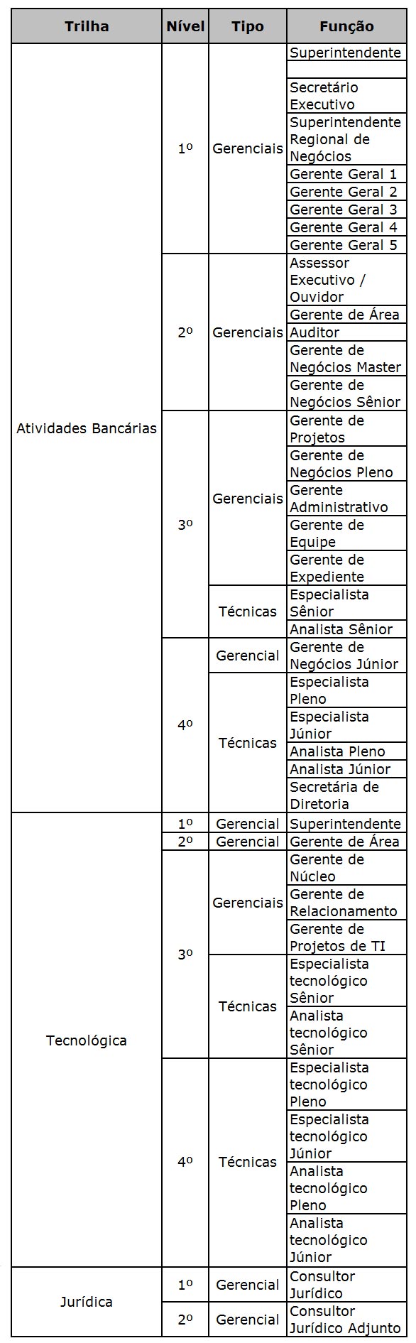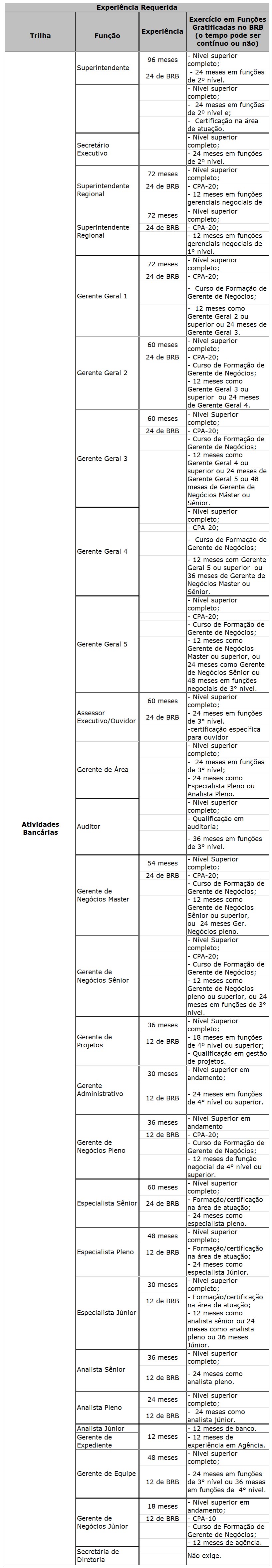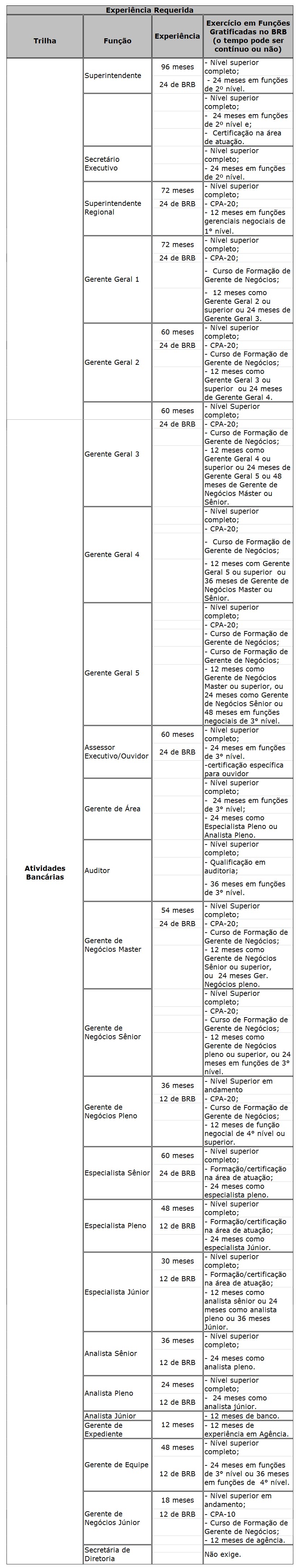 V. As funções gratificadas são de acesso exclusivo aos empregados ocupantes do cargo de origem da trilha conforme especificado na tabela a seguir: