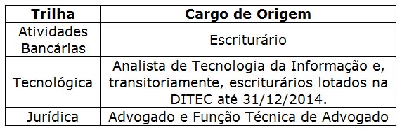 III. Os escriturários que atualmente se encontram lotados na DITEC serão mantidos nas funções da trilha bancária, transitoriamente.