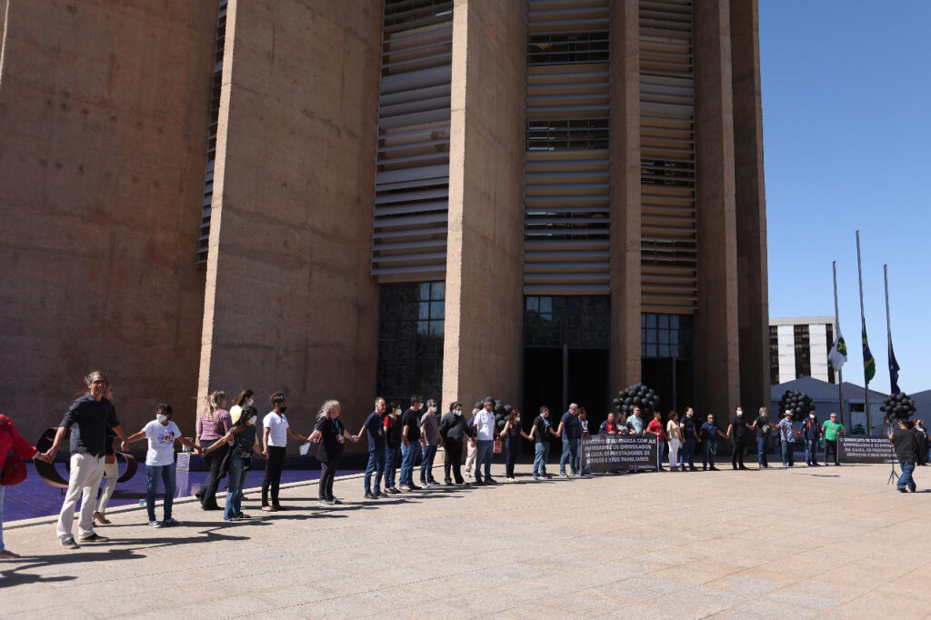 O abraço, acompanhado de um minuto de silêncio, reforçou o pedido pelo fim de um clima organizacional adoecedor. No tradicional pátio do Matriz I, juntaram-se os lutos pela morte simbólica das vítimas de assédio e pela morte real do diretor de Controles Internos e Integridade, responsável pelas investigações dos casos envolvendo o ex-presidente da Caixa. A manifestação, que destacou a situação como urgente, cobrou apuração rigorosa dos acontecimentos.