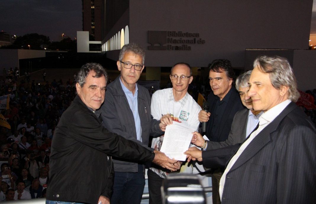 Seis ex-ministros da Saúde lançaram, na segunda-feira (5), manifesto em defesa do Sistema Único de Saúde, durante ato em prol do SUS, em frente ao Museu da República, que fez parte da 16ª Conferência Nacional de Saúde, realizada em Brasília. O evento reuniu cerca de 5 mil participantes de todo o país, que criticaram o desmonte das políticas sociais no Brasil.