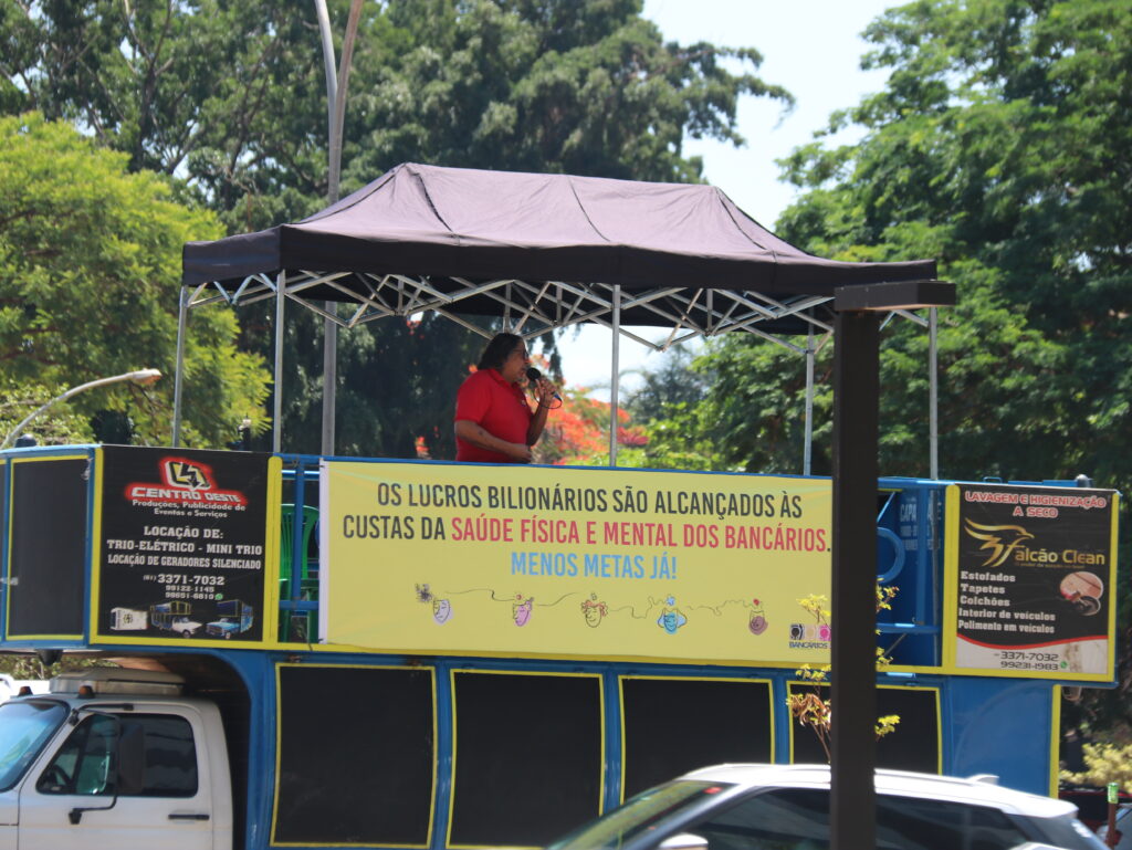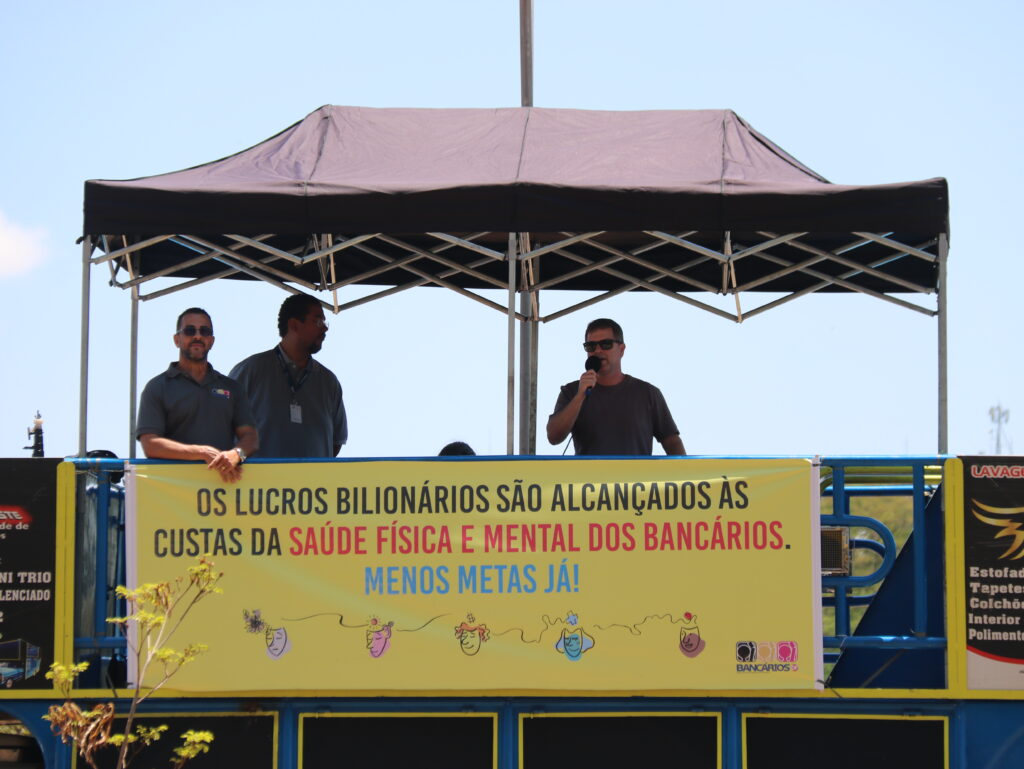 Zezé Furtado, secretária de Mulheres do Sindicato, também deu seu recado: “Menos Metas, Mais Saúde. Amanhã o BB completa 215 anos de fundação, uma empresa que até hoje ainda usa o assédio dentro da sua estrutura. Todo bancário tem direito a ter saúde, qualidade de vida. É preciso acabar com isso”.