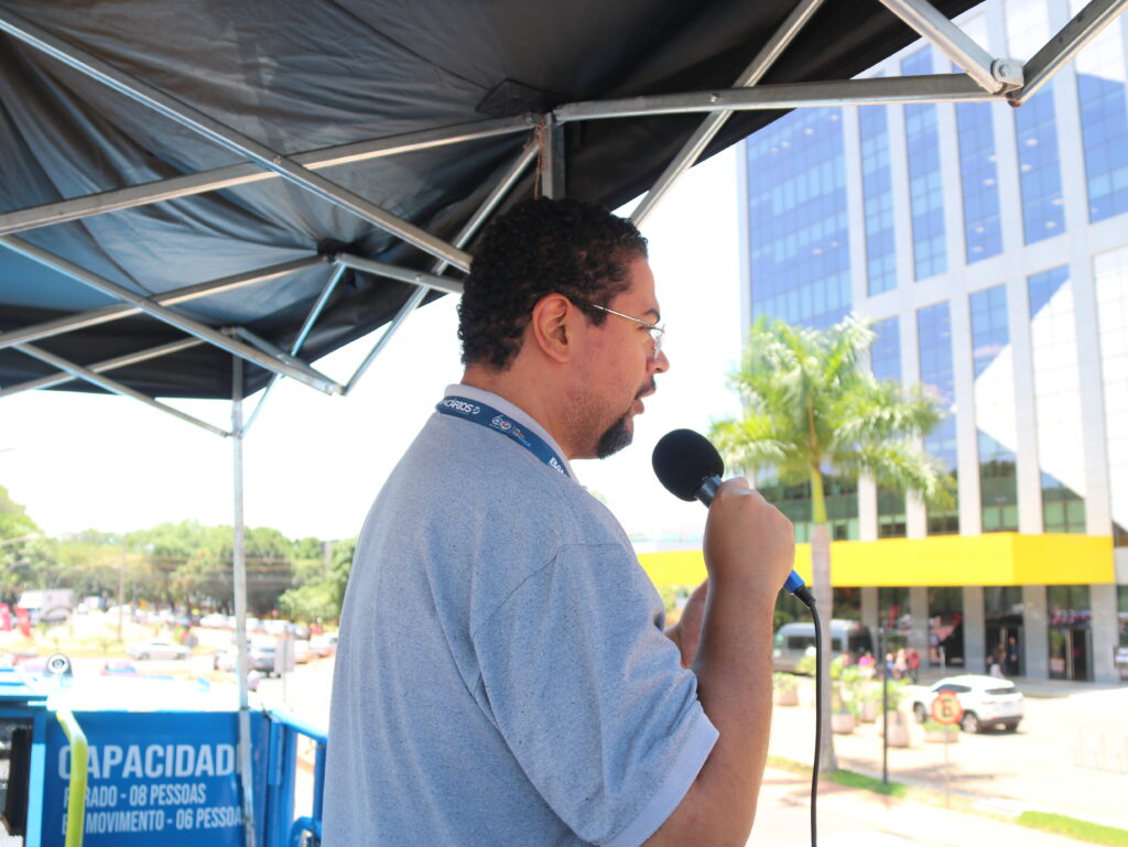 “O Sindicato, em parceria com a UnB (Universidade de Brasília), está fazendo este estudo sobre a saúde do trabalhador bancário. Convidamos você a acessar o QR Code neste panfleto e responder a pesquisa para que nós tenhamos os dados fidedignos e um retrato fiel do que está acontecendo na nossa categoria. Nosso propósito é promover a saúde mental dos bancários”, endossou o secretário de Aposentados do Sindicato, José Wilson.