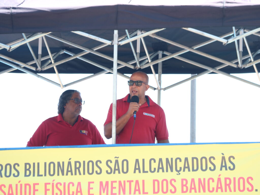 Secretário de Política Sindical do Sindicato, Paulo Vinícius, o PV, reforçou: “Amanhã o BB faz aniversário, e nós estamos esperando as possibilidades de mudança dentro da nossa instituição para o encarreiramento, para um clima organizacional que não adoeça o funcionalismo, para diminuição da epidemia de saúde mental que hoje afeta a categoria, que é o quem tem feito os maiores lucros que os bancos têm tido”.