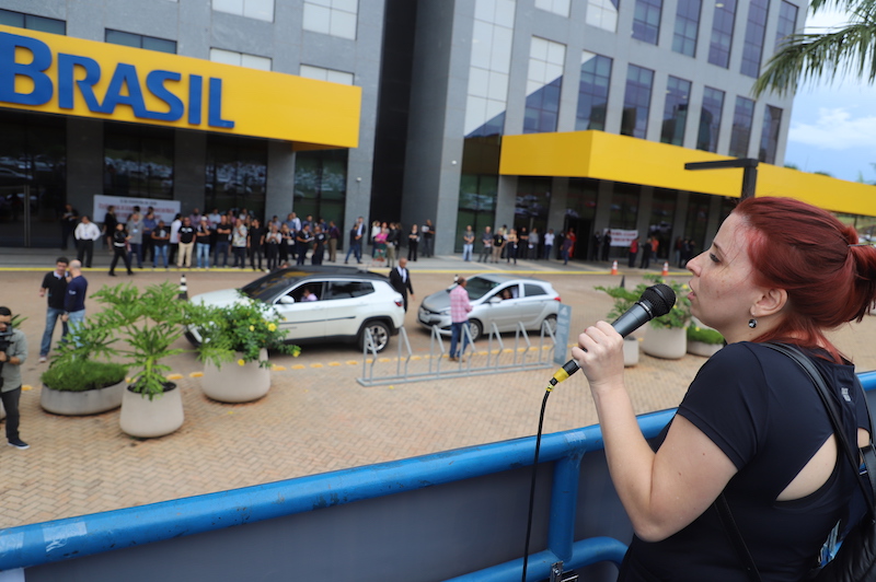 "A grande participação nas atividades do Dia Nacional de Luta mostra a crescente insatisfação dos funcionários com a reestruturação que o BB quer impor, em prejuízo dos bancários, que enfraquece o banco e facilita a privatização. O funcionalismo reagiu em todo o país, especialmente nas bases da região Centro-Norte. Em Brasília, realizamos atos em grandes concentrações, como Ditec, Cenop, Direção Geral e também em agências", afirmou Marianna Coelho, representante da Federação dos Bancários do Centro-Norte (Fetec-CUT/CN) na Comissão de Empresa dos Funcionários do BB.