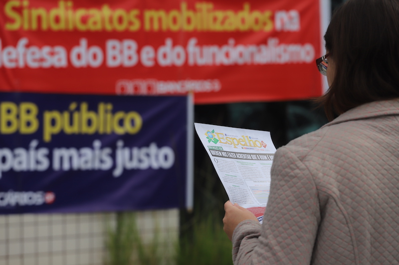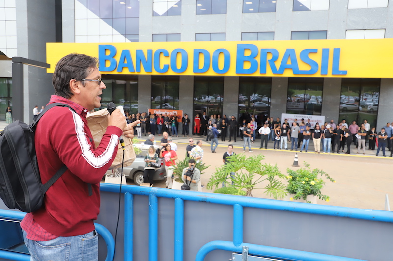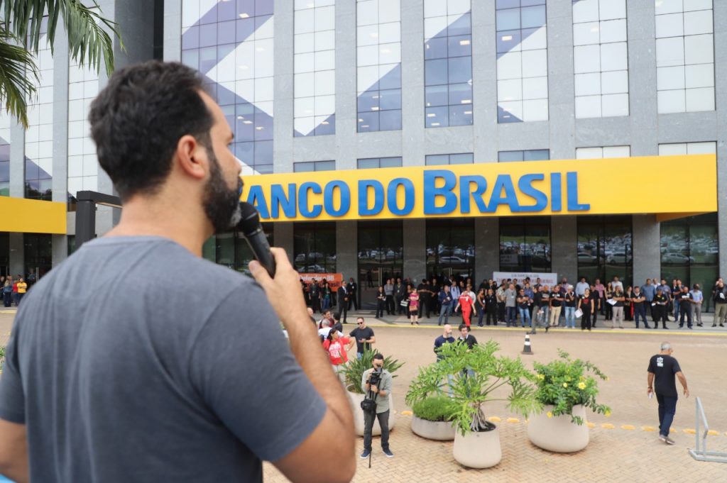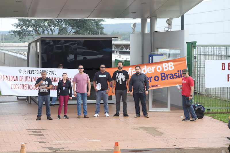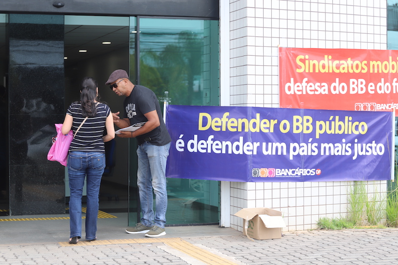 As atividades promovidas pelo Sindicato no Dia Nacional de Luta contra a reestruturação imposta pelo Banco do Brasil, nesta quarta-feira (12), começaram cedo em Brasília e se estenderam até o final da tarde, com um ato em frente ao Edifício BB (Fordão), na 201 Norte. Na ocasião, ficou definida a realização de uma plenária na próxima quinta-feira (20), às 19h, na sede da entidade (EQS 314/315), para organizar e reforçar a luta em defesa do banco público e contra a retirada de direitos dos funcionários.